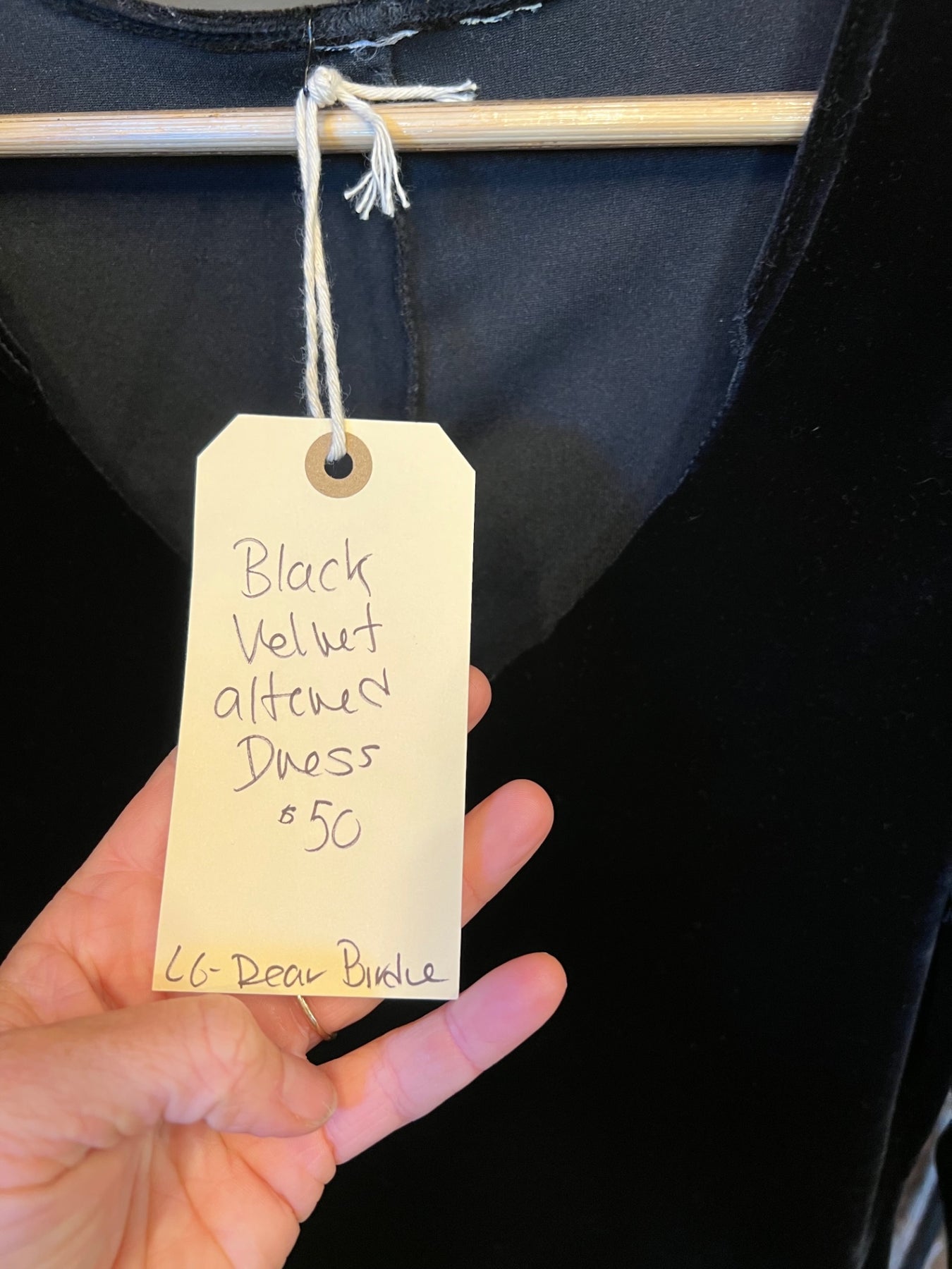 This vintage-inspired black velvet dress exudes timeless elegance with its sleek silhouette. Fringed details along the shoulders add a touch of boho charm, perfect for making a statement at any evening event. The deep V-neckline enhances its sophisticated vibe, making it a versatile piece for cocktail parties or upscale gatherings. Crafted from rich velvet, it offers a luxurious feel and look. Ideal for those who love classic style with a hint of retro flair.