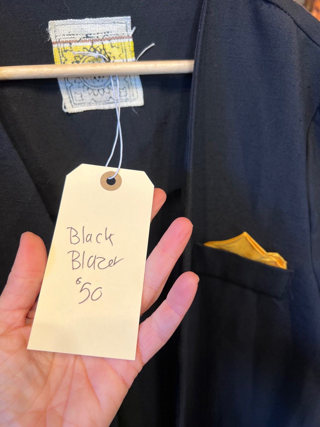Dear Birdie Vintage Blazer Extra large Black linen with yellow pocket square
